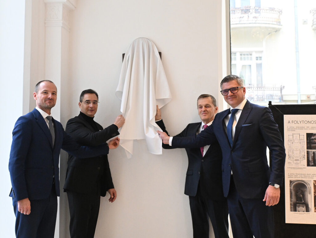 Felavatták az Építőipari Nívódíjat hirdető táblát a Csokonai Nemzeti Színházban